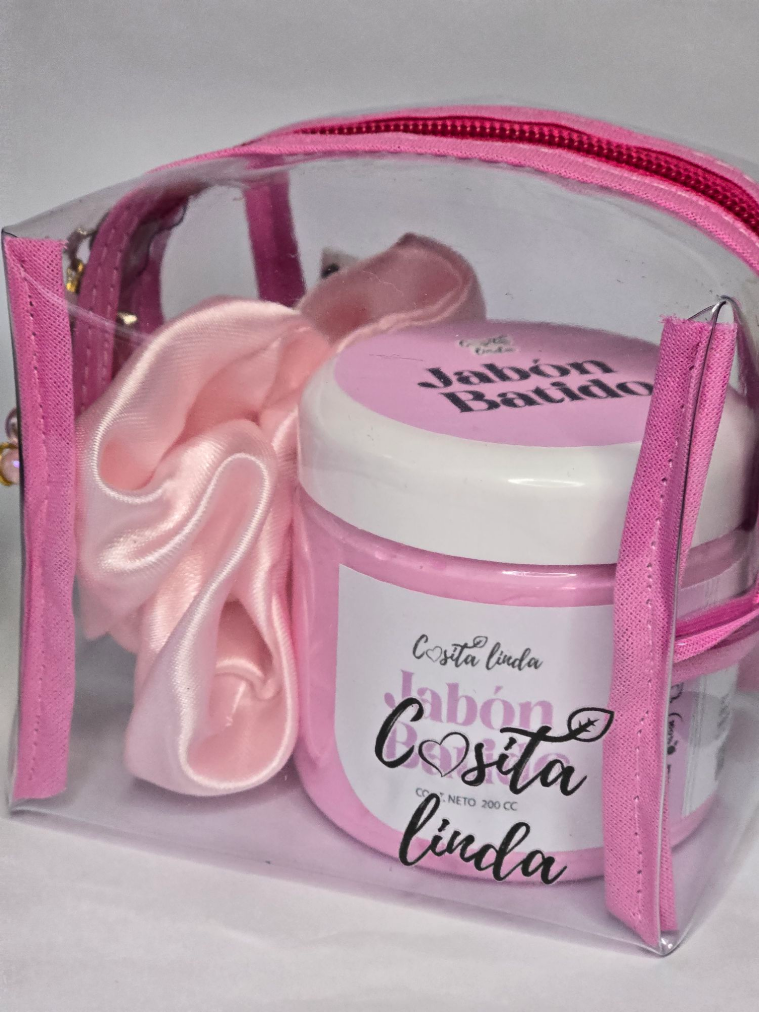 El combo incluye 1 neceser mini+ 1 jabón batido (fragancia a elección)